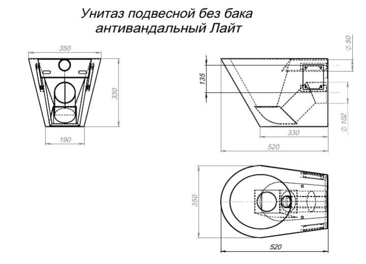 Унитаз подвесной антивандальн без бака ТРУГОР УПббА ЛАЙТ
