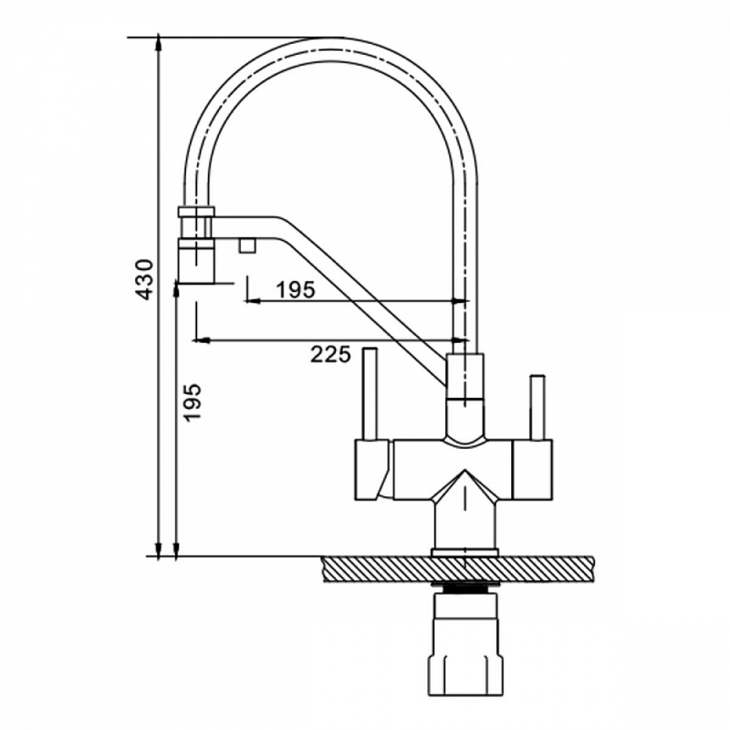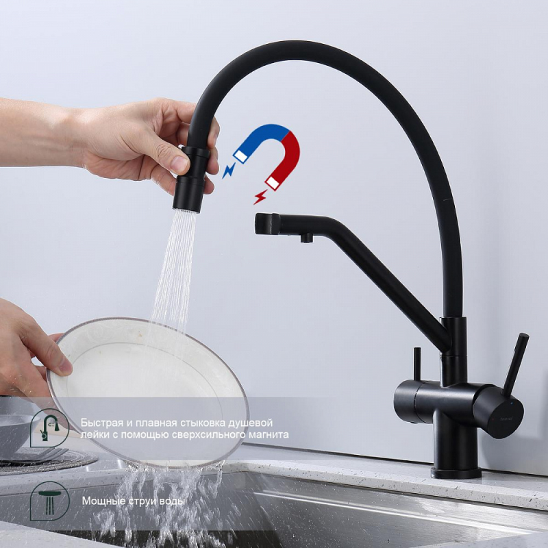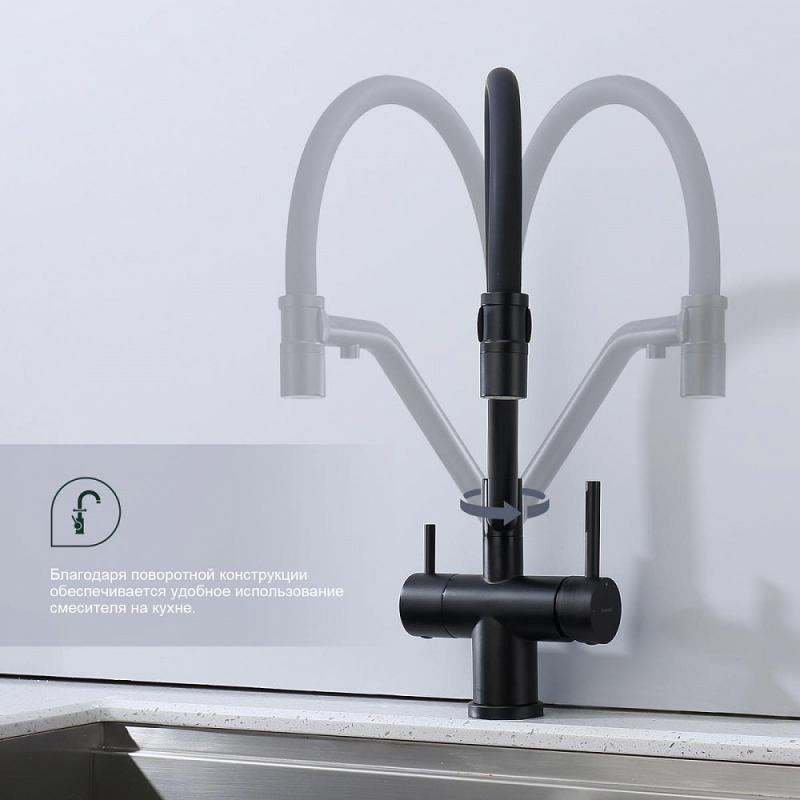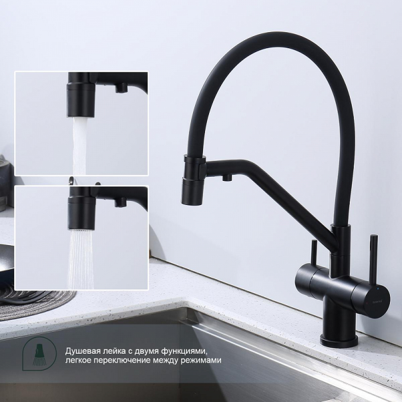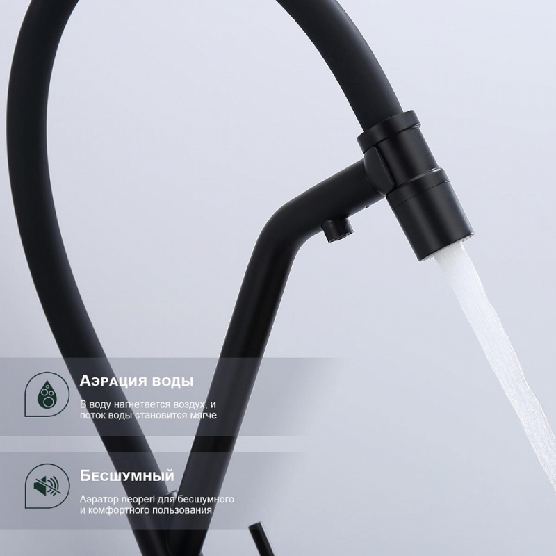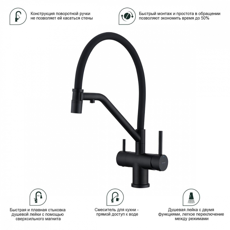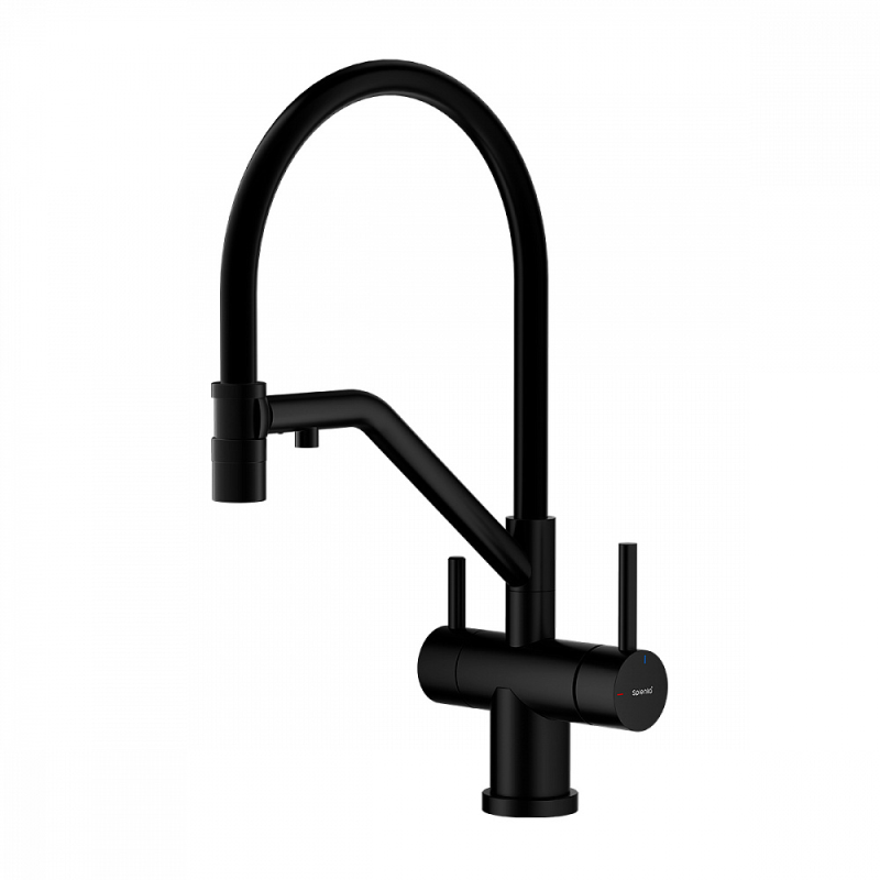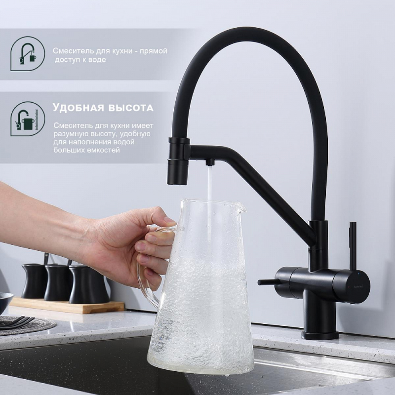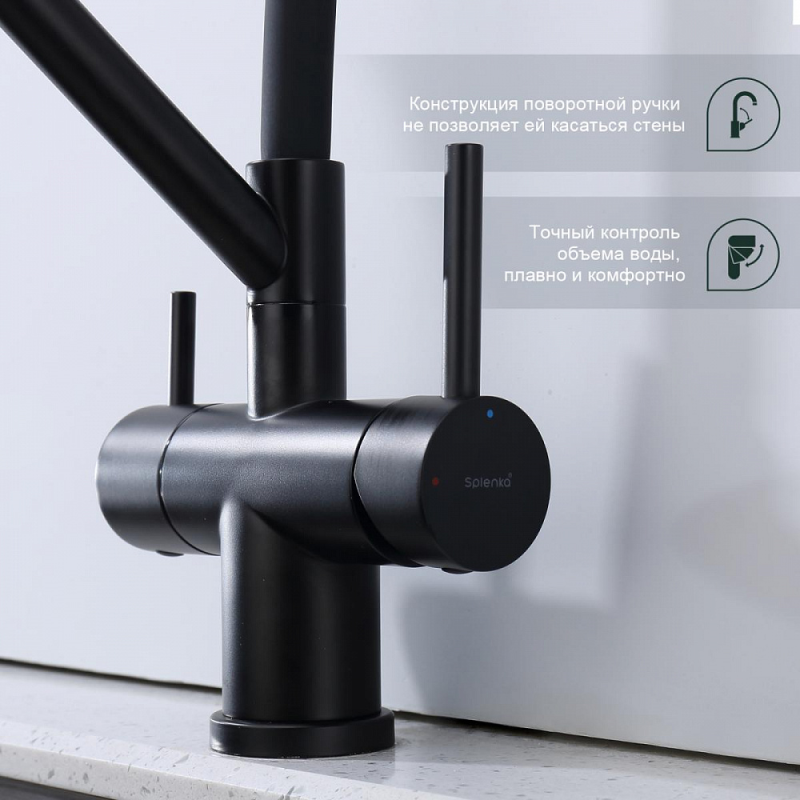 Смеситель для мойки S70 настольный одноручный гибкий излив с подключением к фильтру сталь нерж керамич картридж 35мм черный Splenka S70.62.06