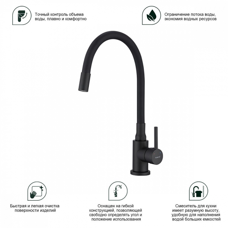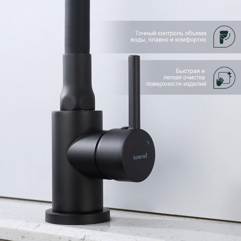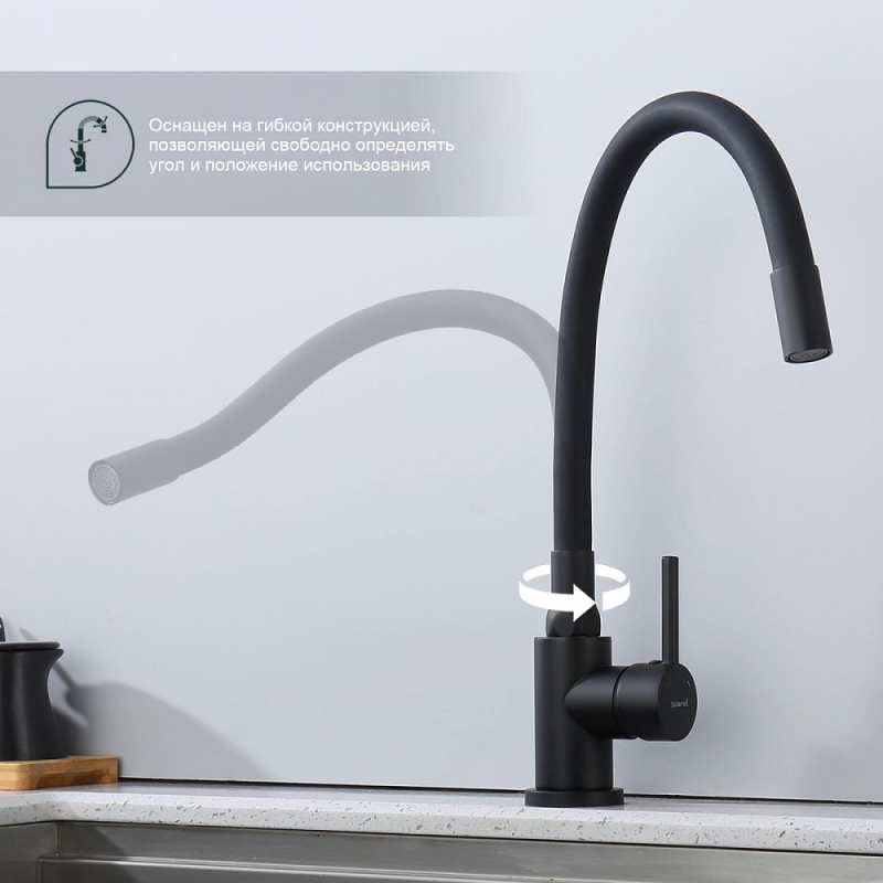 Смеситель для мойки S201 настольный одноручный гибкий излив сталь нерж керамич картридж 35мм черный Splenka S201.4406.06