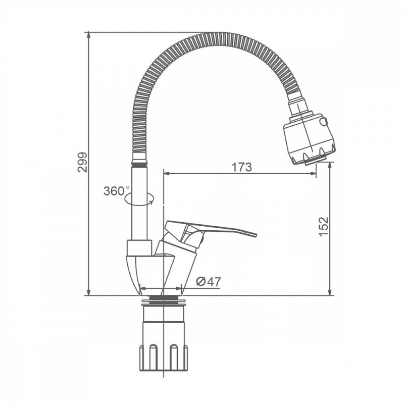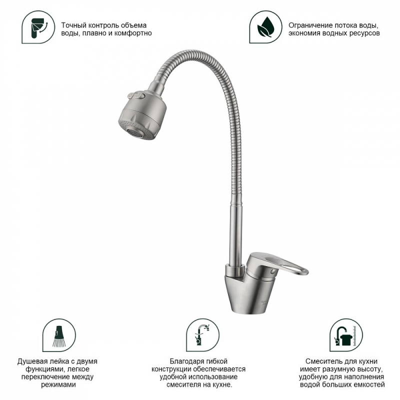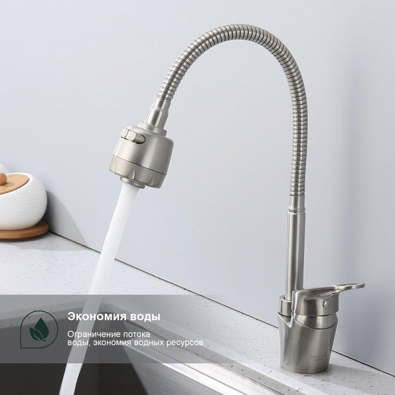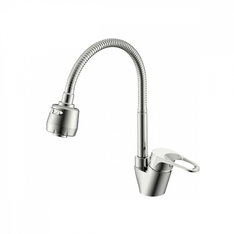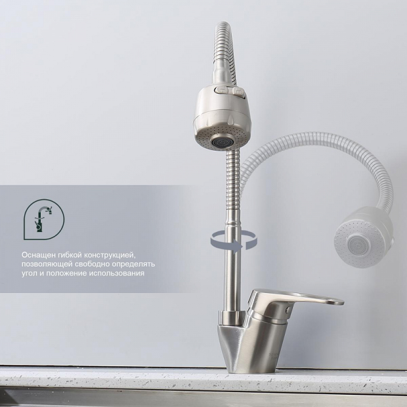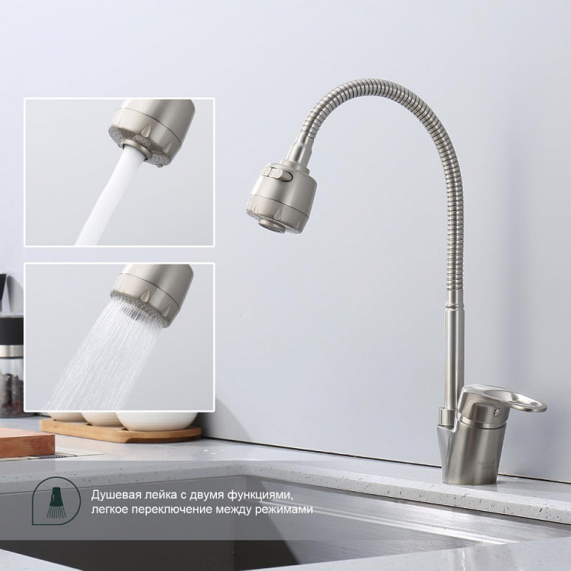 Смеситель для мойки S202 настольный одноручный гибкий излив 2 режима сталь нерж керамич картридж 35мм сатин Splenka S202.47.05