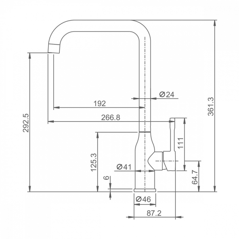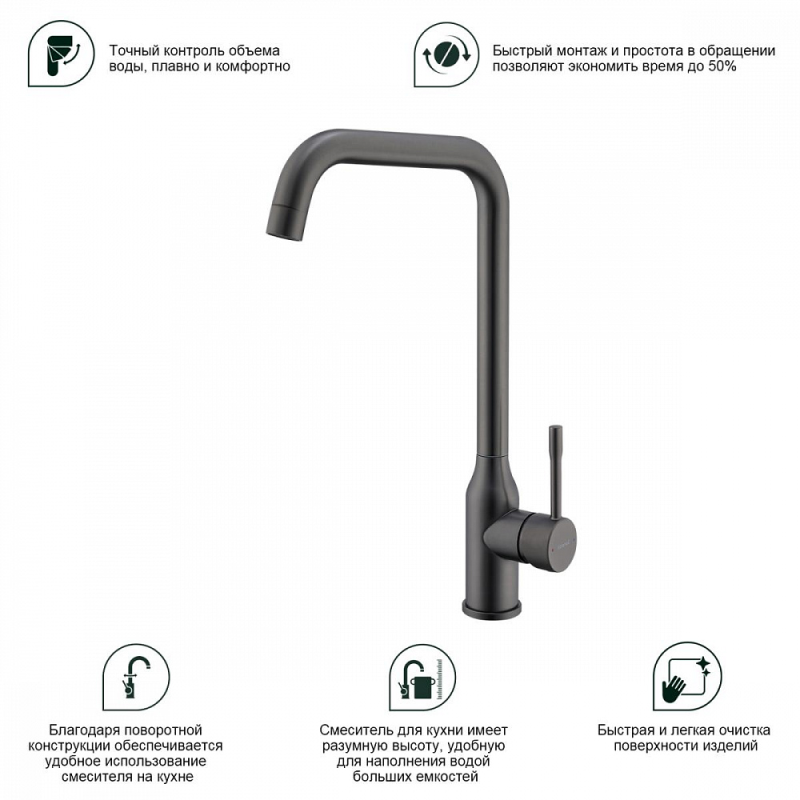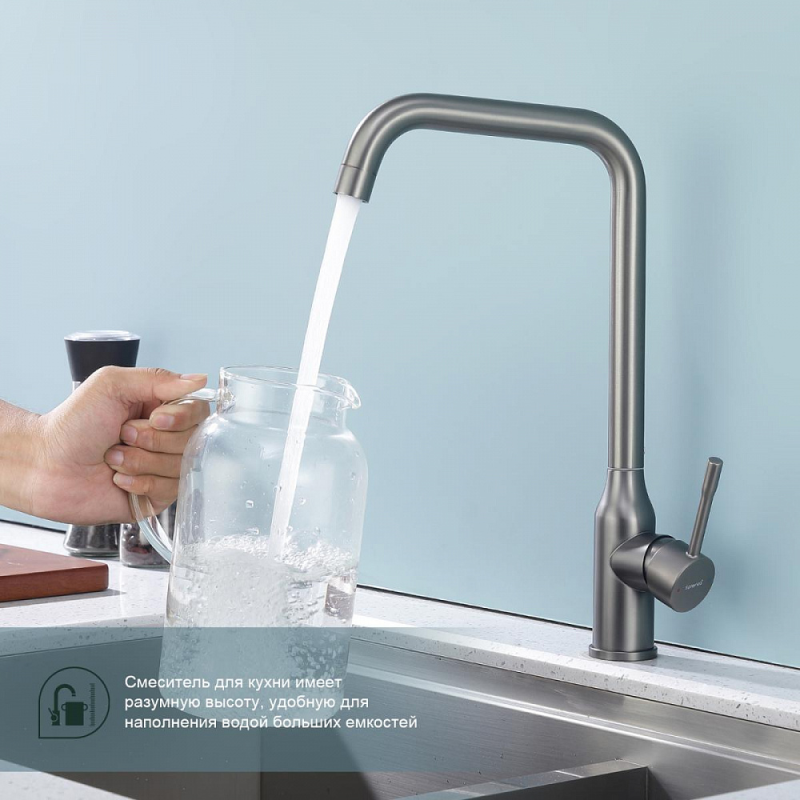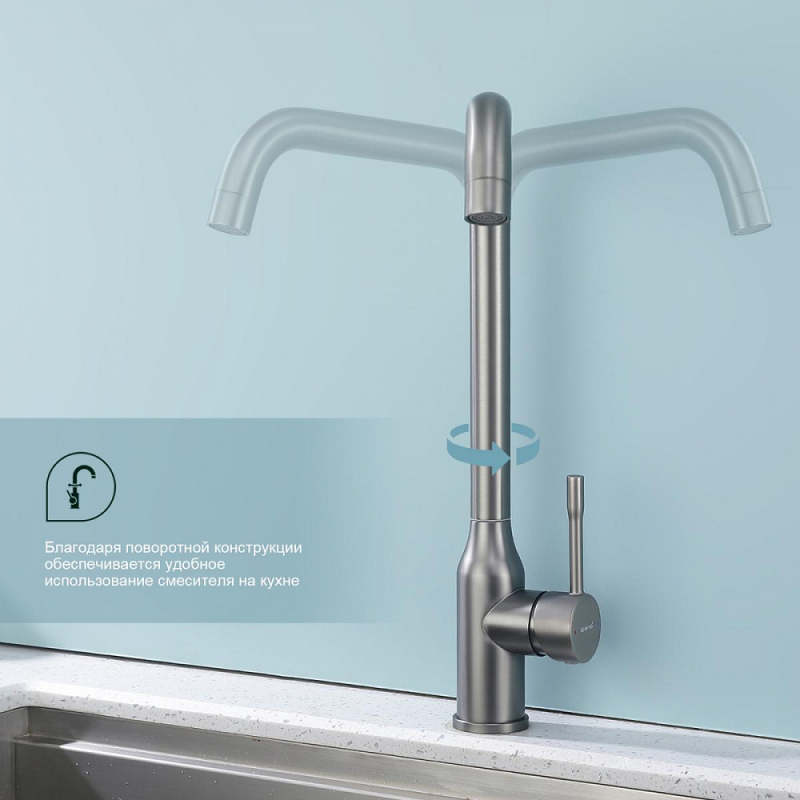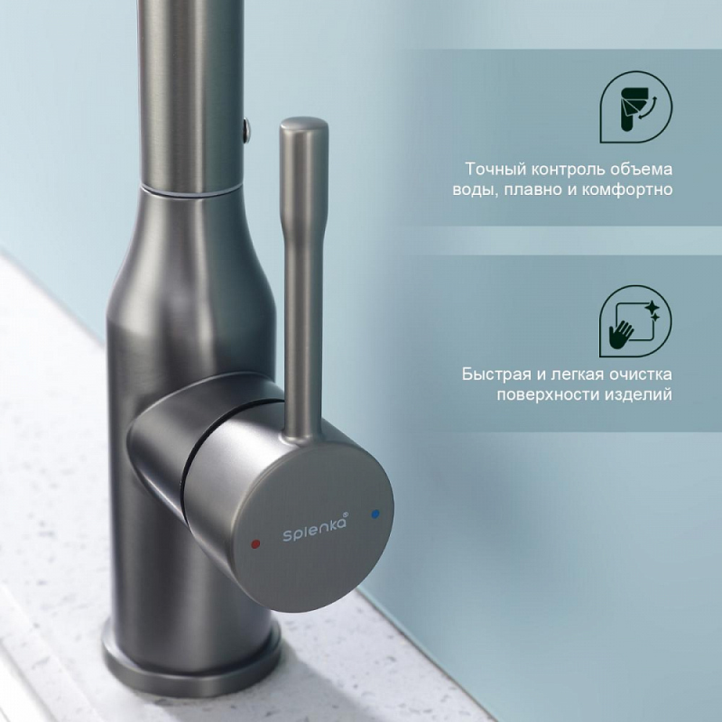 Смеситель для мойки S206 настольный одноручный высокий излив сталь нерж керамич картридж 35мм графит Splenka S206.40.09