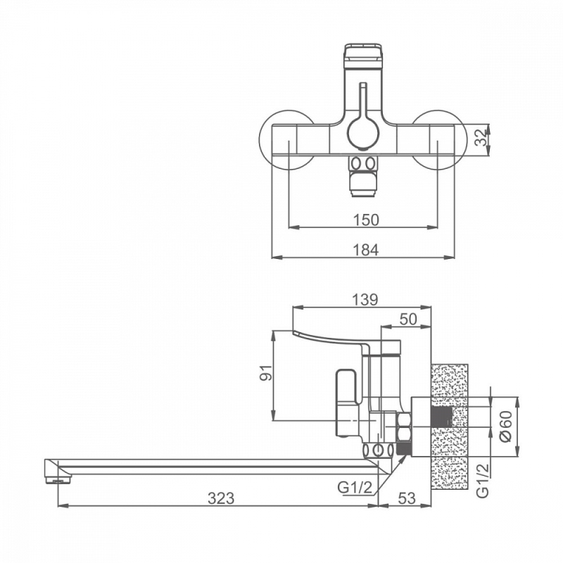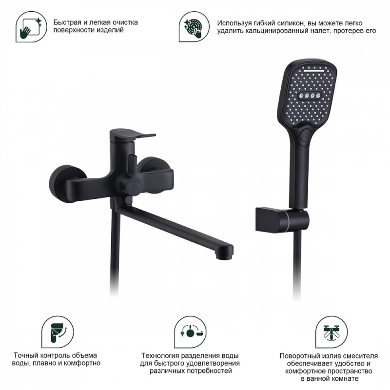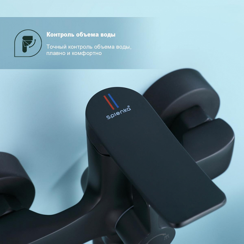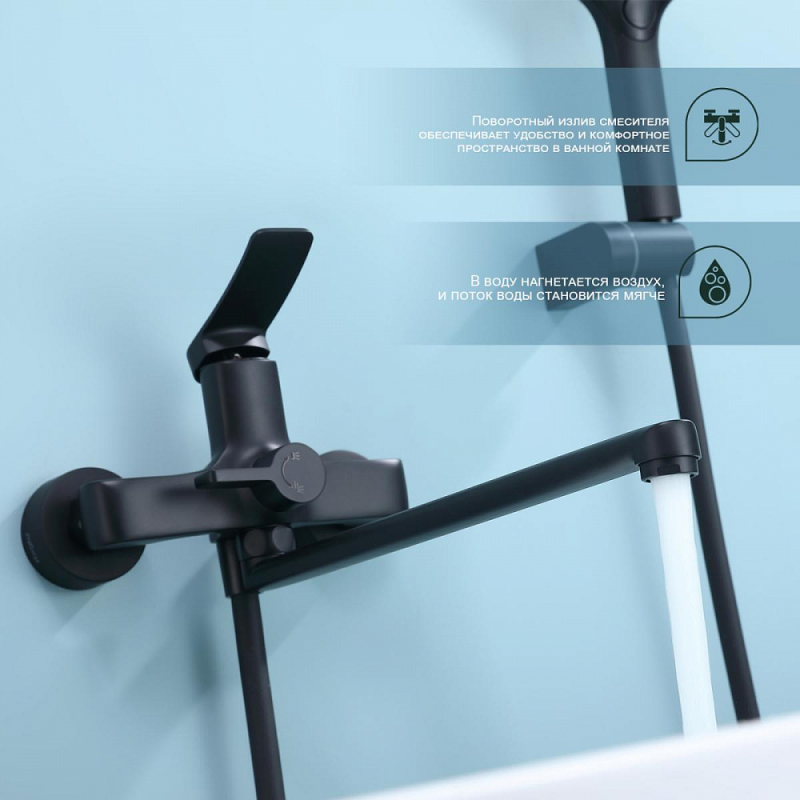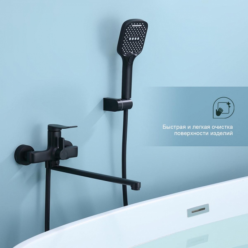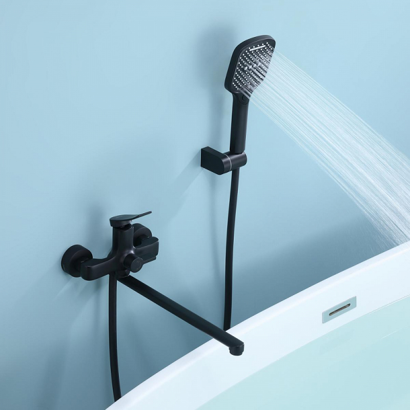 Смеситель для ванны S31 настенный одноручный длинный излив латунь керамич картридж 35мм черный Splenka S31.22.06