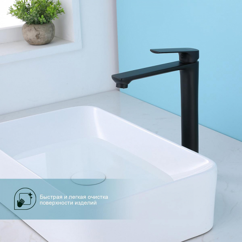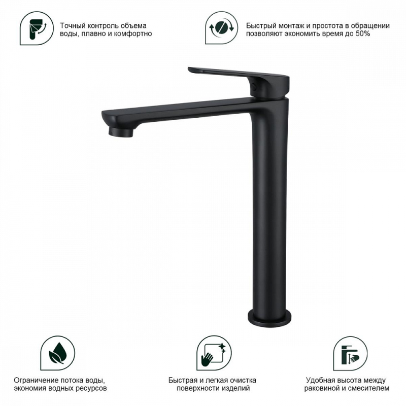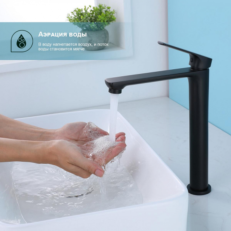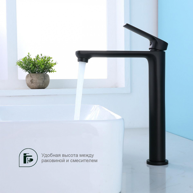 Смеситель для умывальника S30 на раковину-чашу одноручный монолитный латунь керамич картридж 35мм черный Splenka S30.15.06