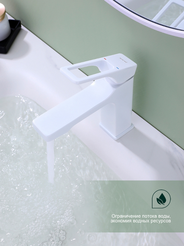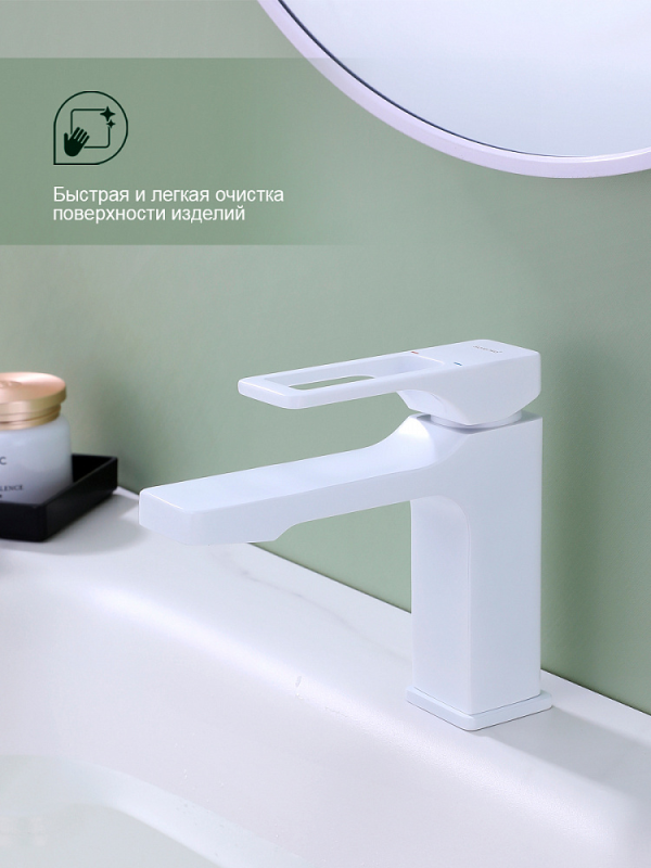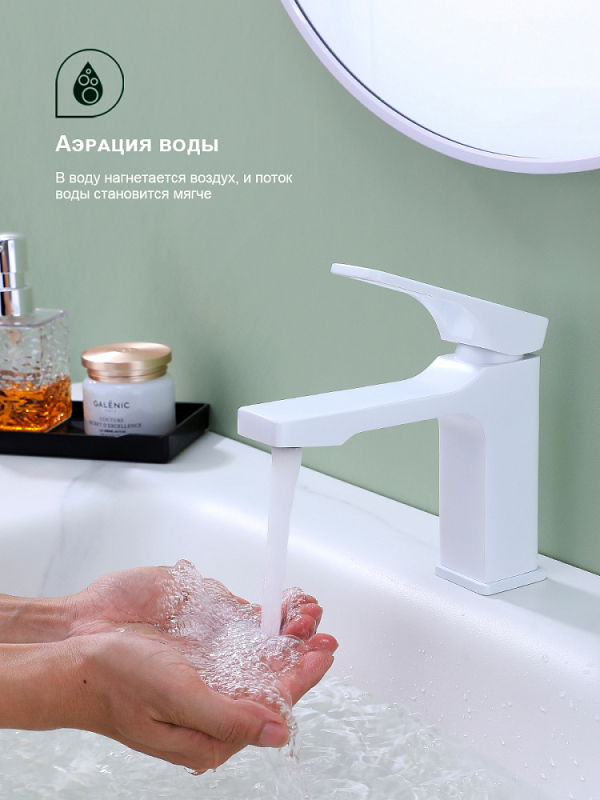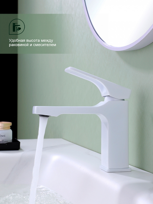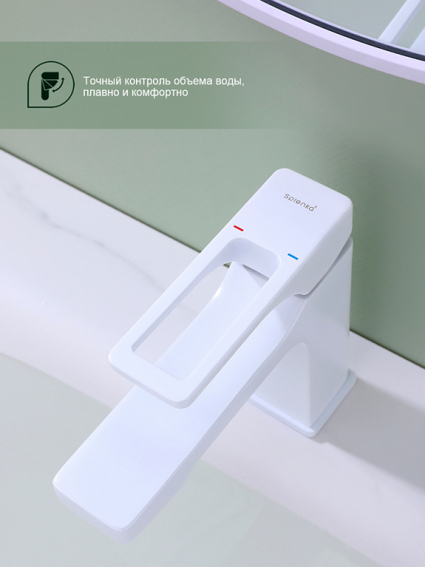 Смеситель для умывальника S55 настольный одноручный монолитный латунь керамич картридж 35мм белый Splenka S55.10.08
