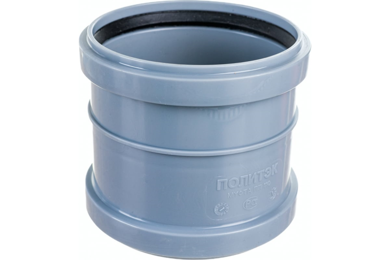 Муфта PP серый соединительн Дн110 2-х растр (90) Политэк 301120