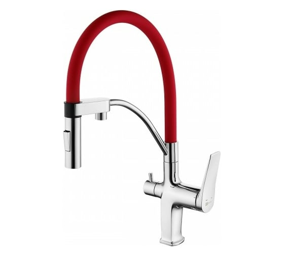 Смеситель для мойки COMFORT настольный одноручный высокий излив с подключением к фильтру хром/красный LeMark LM3074C-Red